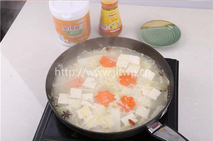 1.金鑼原汁雞骨高湯30g 2.金鑼雞汁10g 3.金鑼調(diào)味雞骨油10g 4.蘿卜100g 5.紅棗5顆 6.姜5g 7.蔥20g 8.食鹽2g 9.水1.5Kg 10.食材若干